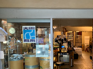 입구에 로스팅 기계가 있어서